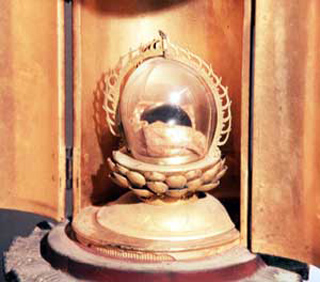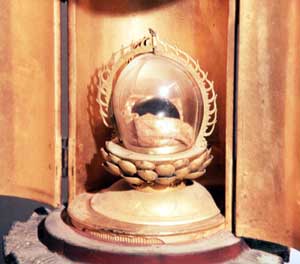 当寺を開山した睿憲上人が三保明神から授かったと伝えられる宝珠(ほうしゅ)。 現在の龍泉の池あたりの苔むす岩の上に留まっていたと言われます。